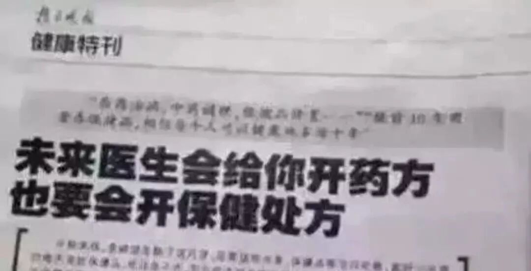 原卫生部长陈竺提出,未来医生必须会开两张处方:一张是针对病情开具的药方;另一张是膳食营养处方。未来的医生必须具备营养保健学的知识,针对慢性病,特别要发挥营养保健治疗的作用。中国保健协会理事长秦小明曾指出:健康不只是治病就可以了,医疗对健康的促进作用不到10%,而营养状况占80%。